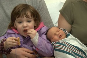 Reegan is showing off her new bracelet and cookie. I can't wait till I'm old enough to eat cookies. |  Could we please close the curtains? |