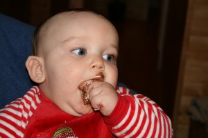 Grandpa, where's that cracker you promised me? |  Yummy cracker. |