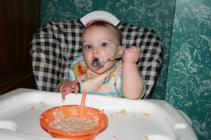 I'll get down in a minute. |  Using a big boy spoon and bowl for my cereal. |