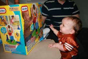 Finally! Some boy toys around here. |  How did my face get so dirty again? |