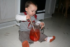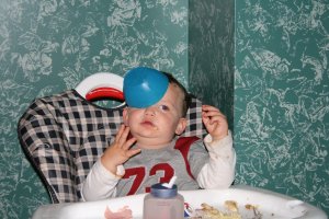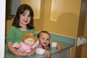 This is not an optical illusion - Reegan and I are in the sink. |  Mommy said we can eat in the basement tonight. |