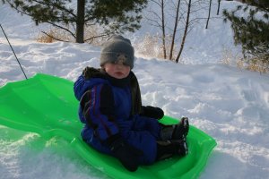 It was a nice day so we decided to go sledding. |  Daddy or Mommy usually have to go with me. |