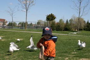 Where did those ducks go. |  Feeding the ducks some bread. |