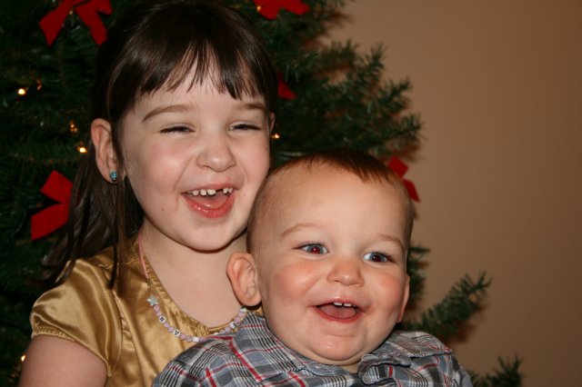 Sitting on Ree Ree's knee.