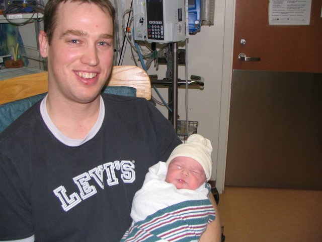 Daddy gets some one on one time with me in a rocking chair in the nursery while Mommy is in the recovery room.