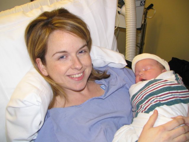 Mommy gets to hold me for the first time. Mommy's belly was pretty comfy and so are her arms.