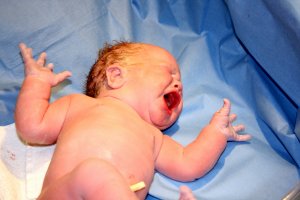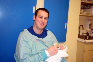 I'm 15 minutes old and very upset that I was taken from my nice warm swimming pool. |  Getting my first meal with Dad. |