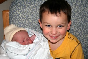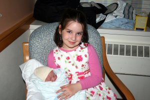 So tired after lunch. I wish that nurse would get the ointment out of my eyes. I can't see. |  I got to meet my big sister Reegan and big brother Colton. |