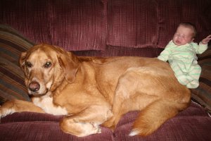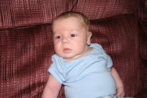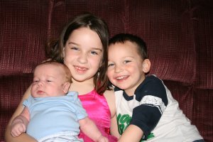 Same positions Mom put Reegan and Colton in at my age. Gosh, I hope the doorbell doesn't ring. |  Reegan and Colton with their toy doll - me! |