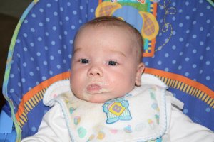 Back to safety with Mom. |  Ate my first rice cereal at 5 weeks. I loved it! |