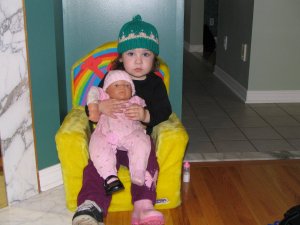 Feeding time, Baby. I'm practicing for the real baby! |  Daddy's making me help with his yard work. |