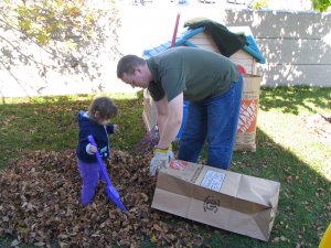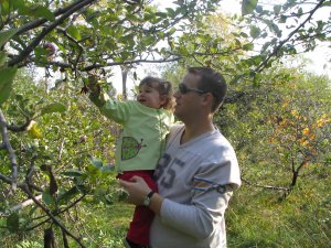 Daddy, how about I hold the bag? |  We went apple picking over Thanksgiving weekend. |
