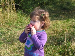 I picked a good one, here. |  Going home to enjoy my apples. |