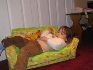 A lazy Sunday afternoon on my couch. |  Having a bath in the kitchen sink. What you can't see is that I still have my diaper and socks on! |