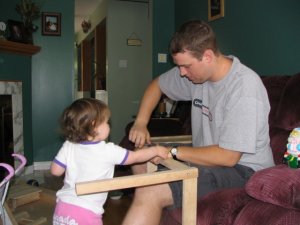 Helping Daddy with my table. |  Mommy's shirt ate my hand. |