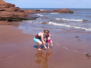 The water is a little too rough for me today |  Eew, eew, I don't like this sand. |