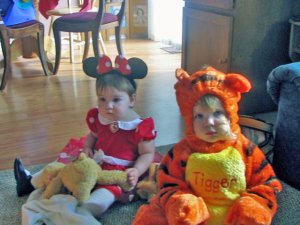 Can we go trick or treating now?? |  Mommy put on a silly headband and got a picture with Minnie. |