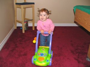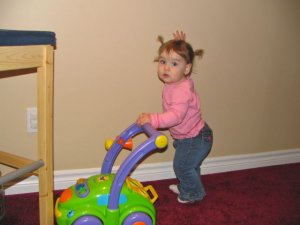 Cruising along behind my walker. |  I seem to be stuck so I'm going to look for a secret passage way in the wall. |