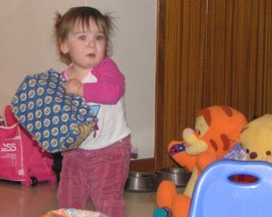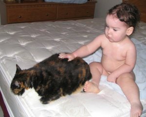 Mommy's been wanting a family picture all week - this was the best one. |  Petting Buddi after my bath. I hope I don't pee on Grandma and Grandpa's bed. |
