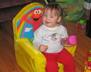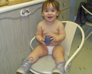 Sitting in my big girl's chair. |  Helping Mommy make supper - you like my boots? |