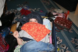 I'm hiding in our suitcase. Can you spot me? |  Another quick snuggle. |