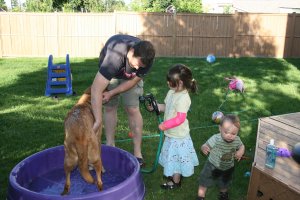 Daddy is letting me rinse Mako off after he is shampooed. |  Still happy! |