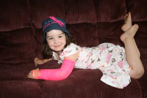 I told you I can still fit in the high chair. |  Do you notice anything - my cast is gone! They said my arm healed perfectly. |