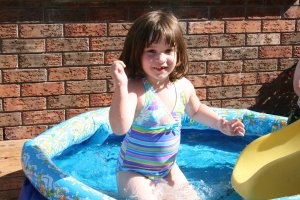 Now I can go in the pool. |  I'm so used to having my cast off, I'm still protecting that arm from the water. |