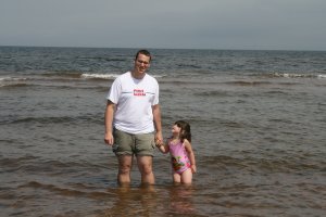 Windy day at the beach. |  Daddy and I had fun jumping the waves. |