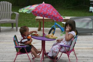 Sitting on the deck at the cottage. |  I don't seem too impressed to be in this picture. |