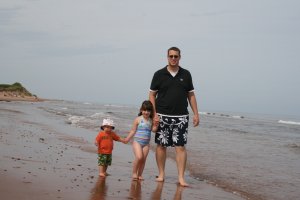 Our sand castle didn't get too far. |  Going for a walk with the boys. |