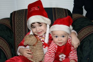 Merry Christmas, Mommy. |  Come on, little brother, give me a Christmas hug |