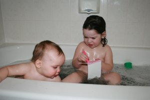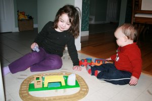 Stop splashing me, Colton. |  I think the train is supposed to go on the track. |