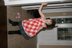 Wearing Mommy's black boots.