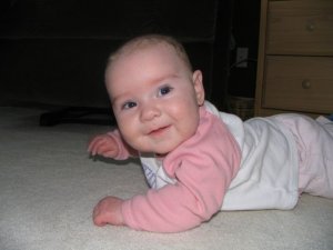 Mommy thinks I look mischievious - just wait until I can crawl! |  Those fish are funny. |