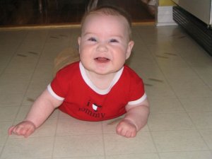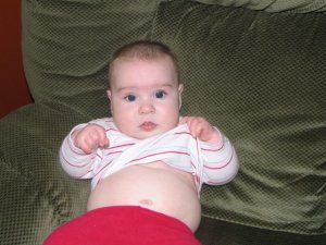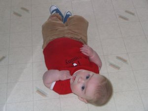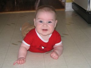 I like being on my belly now that I can hold myself up and see what's going on. |  This will soon by my mode of transportation. Then I'll be a handful! |