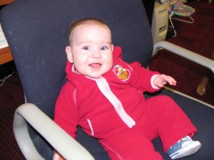 Yummy oatmeal. |  Sitting in Daddy's chair. |