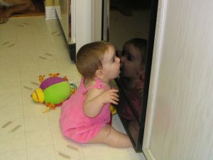 Giving kisses to the girl in the reflection. |  Sitting in the sandbox... |