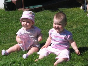 These are my friends Emily and Lauryn. Emily is a month older than me. Her sister Lauryn was teaching us patty-cake.