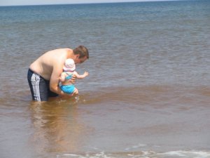 I like it better up here with Mommy. |  I'm not sure if I'm ready for this, Daddy. |