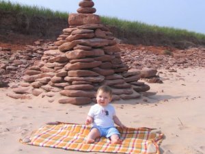 It seems safer up here. |  It took someone a long time to make that rock pyramid behind me. |