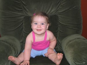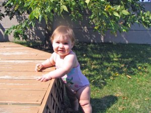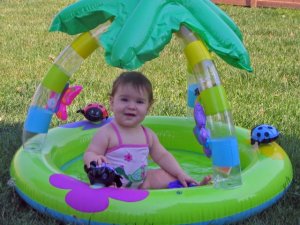 All this swimming has made me hungry - this looks like pizza. |  Look what I can do! I can stand by the deck without help. |