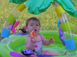 Then Grandma gave me whipped cream and I liked that too! |  In my pool again - it's hot out here. |