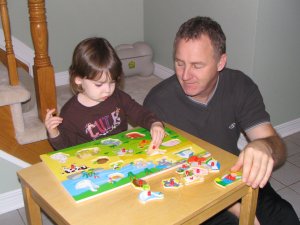 I think head first is an acceptable way too. |  No, Grampie, it goes here. |