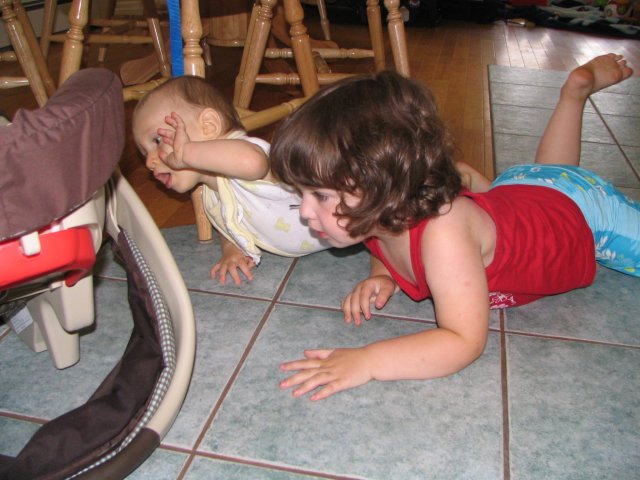 I'm teaching my cousin Ryland how to crawl.