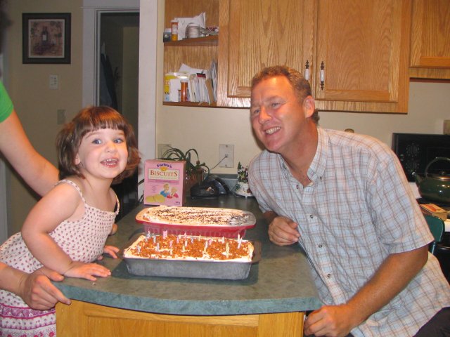 Happy Birthday, Grampie. Grampie's so old that he needs 2 cakes to hold all his candles.