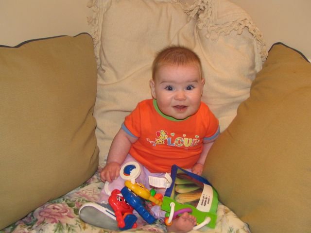 Look at the fort that Mommy made me so I can sit up like a big girl.
